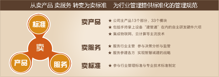 從賣產(chǎn)品 賣服務(wù) 轉(zhuǎn)變?yōu)橘u標(biāo)準(zhǔn)   為行業(yè)管理提供標(biāo)準(zhǔn)化的管理規(guī)范